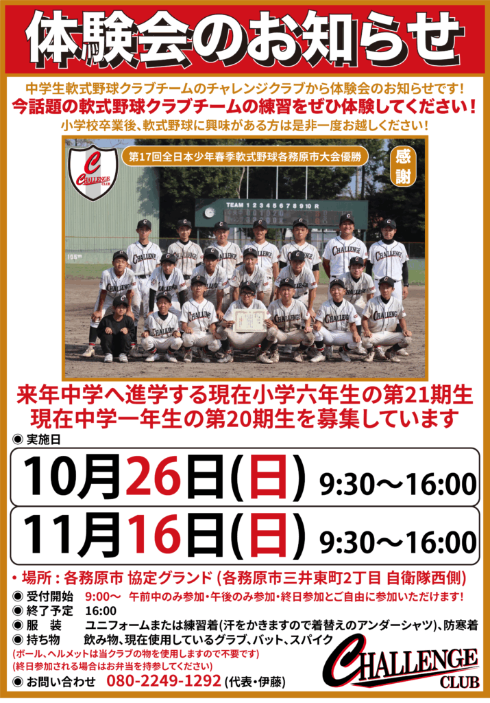 10月26日(日)・11月16日(日)体験会開催のお知らせ